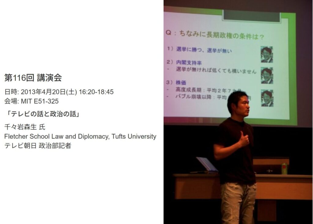 2013年に開催された「ボストン日本人研究者交流会」の第116回講演会のプロフィールに、彼の名前と所属が記載されています。