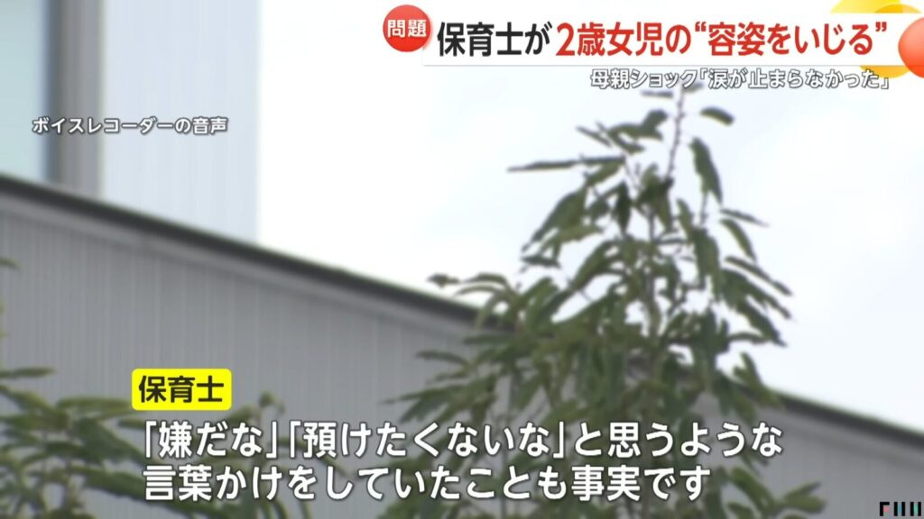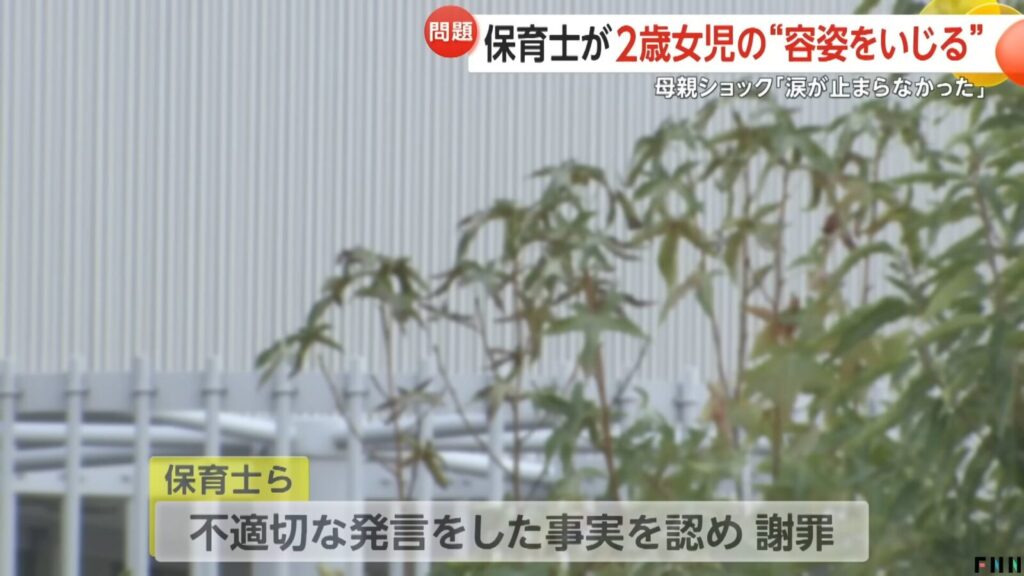 • 概要: 福岡市内の保育園で、保育士2人が2歳の女の子の容姿を「マンボウみたい」「カメレオンに似てる」などと揶揄する不適切な発言があった。
