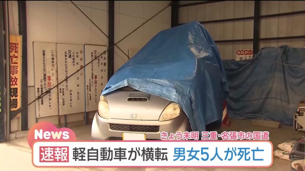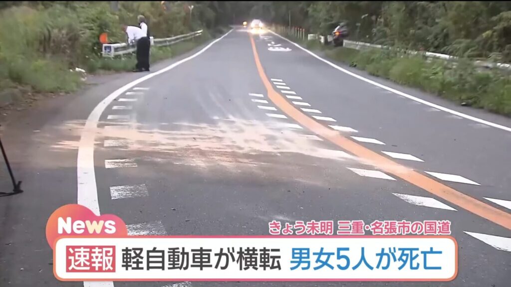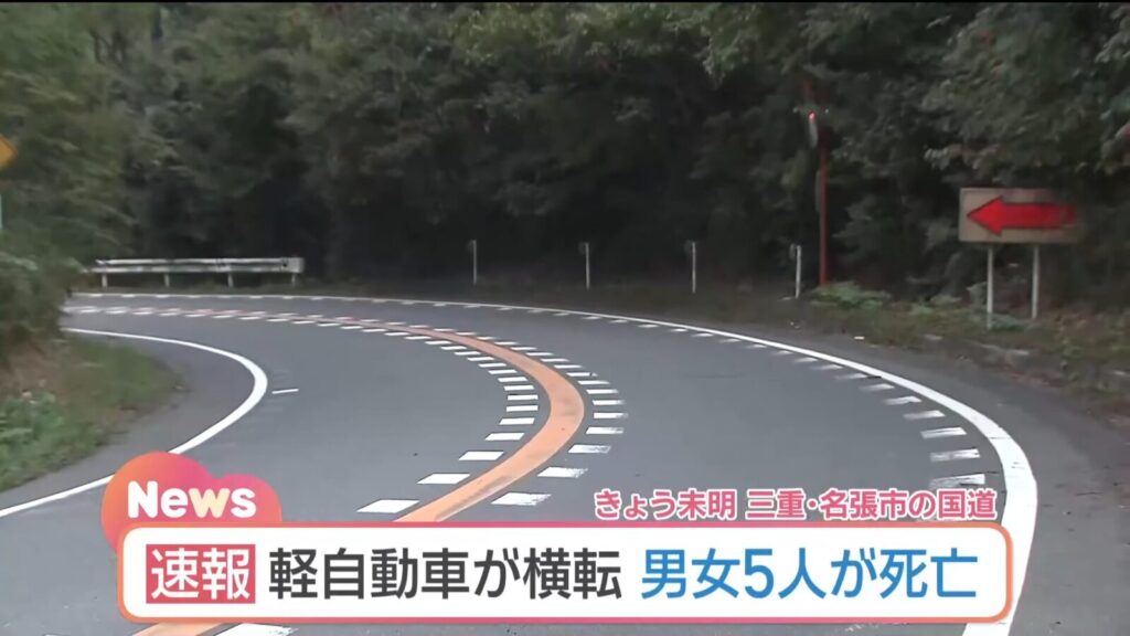 【速報】三重県国道 男女6人が乗った軽自動車が横転 5人が亡くなった模様