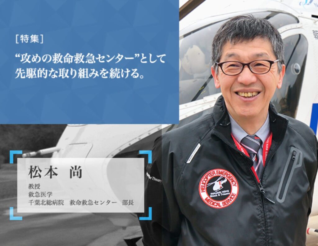 松本氏はそのシステム構築の先駆者となり、以後、日本医科大学千葉北総病院の救命救急センターは、出動回数国内最多(約1万3千回以上)を誇る日本有数の救急医療施設へと成長します。