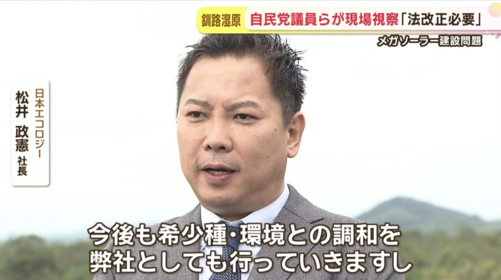 その上で、タンチョウの専門家である認定NPO法人タンチョウ保護研究グループの百瀬理事長から「営巣地や重要な餌場ではなく、タンチョウの生育に大きな影響はない」との評価を得て、釧路市の「太陽光発電施設の設置に関するガイドライン」に基づき、市から受理された上で工事を開始したと説明しています。