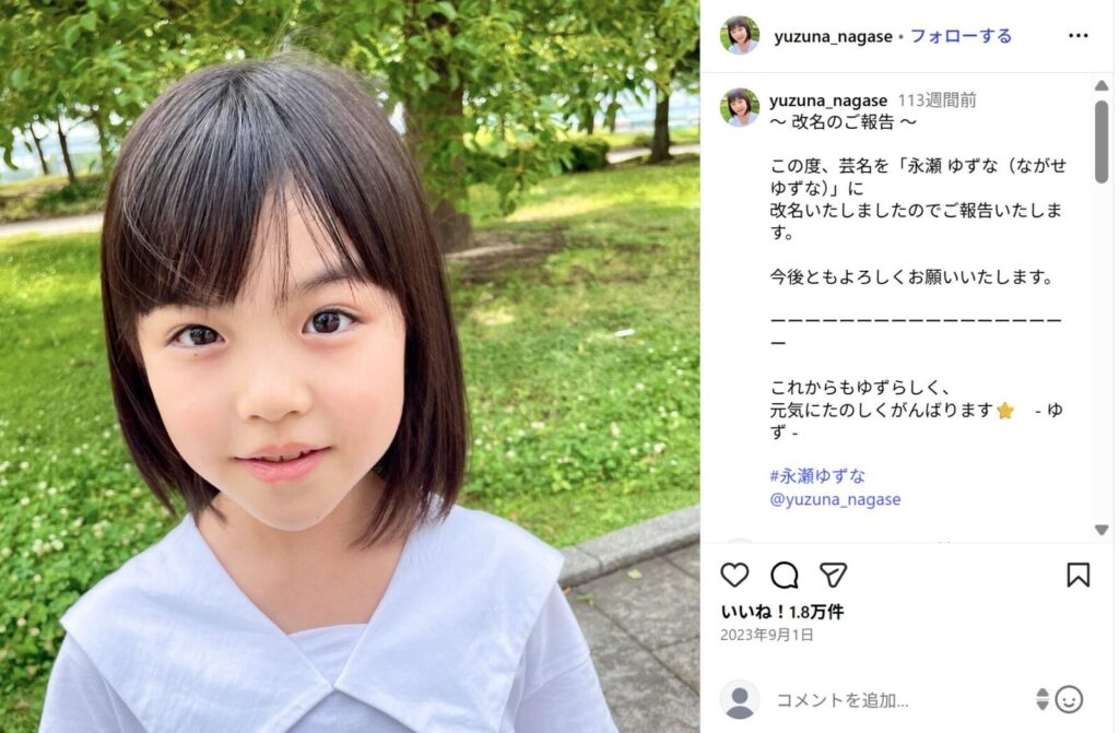 - 永瀬ゆずなさんは2023年9月1日、旧芸名「加藤柚凪」から現在の「永瀬ゆずな」に改名しました。