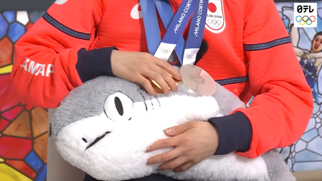 三浦璃来選手と木原龍一選手の心の支えとなっている「シャー子」は、実はサメと猫が融合した不思議なキャラクターです。