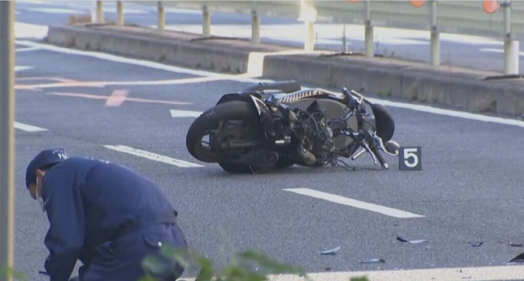 - バイクの男性(37)は弾みで電柱に衝突し、死亡が確認された。