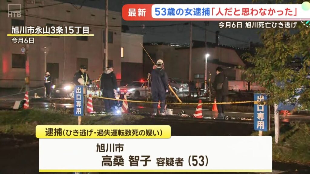 旭川市で起きた死亡ひき逃げ事件で、53歳の女が逮捕されました。